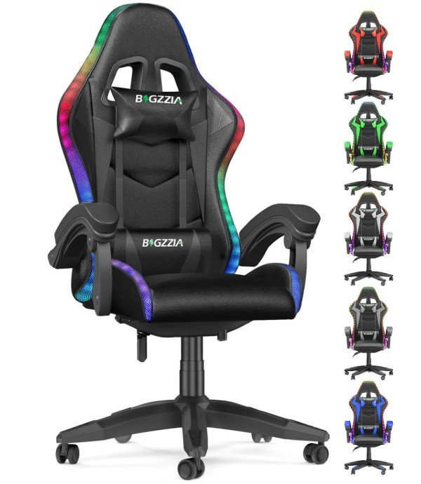 bigzzia Gaming Chair with LED, Gaming Chair, Ergonomic PC Chair with Headrest