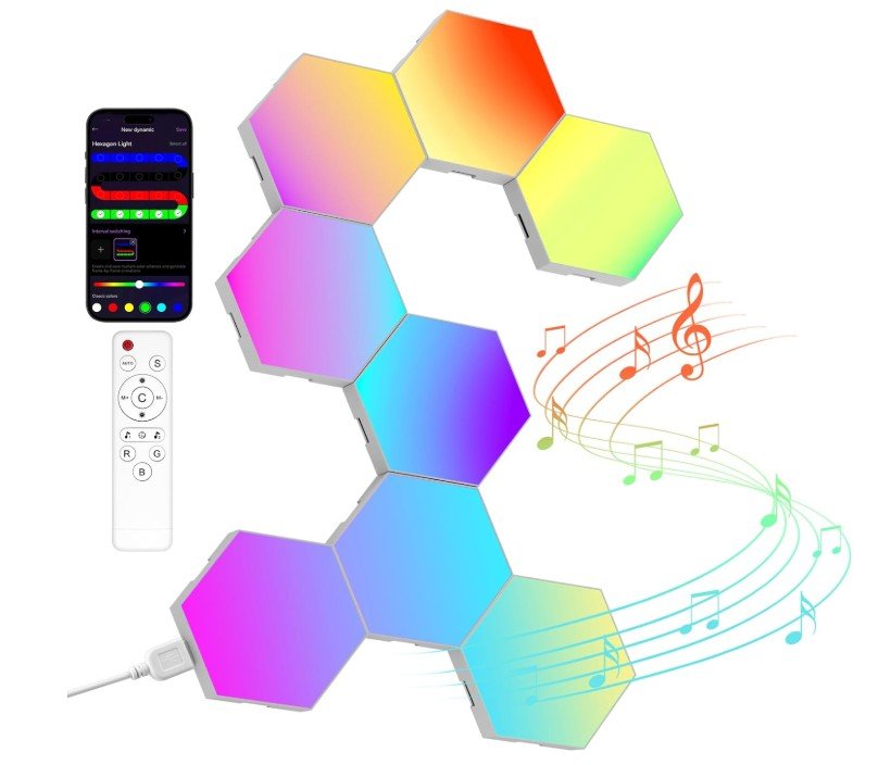 LED Hexagon Gaming Wall Light, 8-Piece Hexagon RGB Panel – Hexagon Honeycomb Wall Light